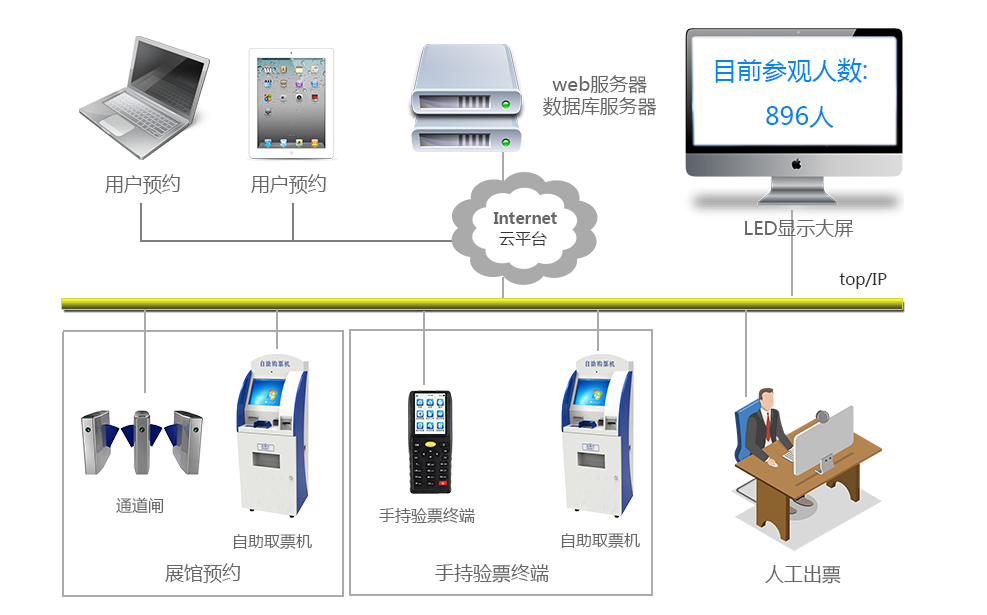 售檢票管理系統(tǒng)集成了智能道閘、自助取票機、身份證閱讀器、出入口紅外計數(shù)器、電子大屏、門票打印機、手持智能終端等硬件設備,利用現(xiàn)代的科技手段代替?zhèn)鹘y(tǒng)的售檢票方式,通過微信自助預約參觀門票,通過身份證或二維碼自助取票,道閘智能識別門票進行參觀游覽,系統(tǒng)自動實時統(tǒng)計參觀人數(shù)。高度智能化自動化,減少人工干預。所有售檢票數(shù)據(jù)全部記錄在數(shù)據(jù)庫內(nèi),可以實現(xiàn)所有的統(tǒng)計與結算的自動化,快速準確的得到所有票務信息,對于提高科技館、博物館、景區(qū)景點的現(xiàn)代化管理水平有著顯著的經(jīng)濟效益和社會效益。