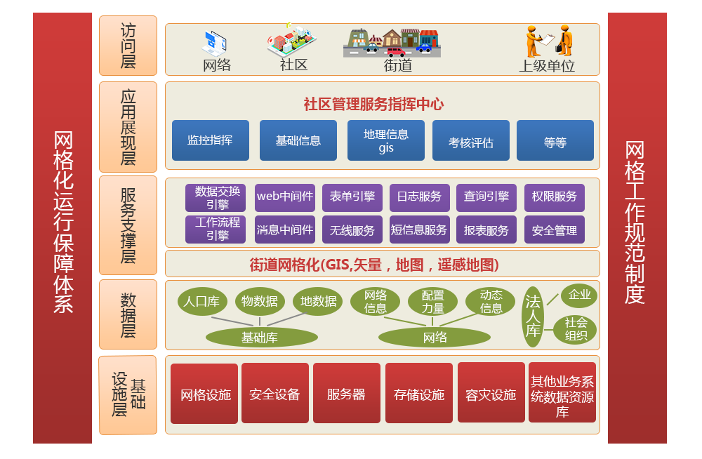 社區網格化管理系統是服務于地區的安全與穩定,為社會服務管理創新、公共突發事件應急響應、城市管理網格化提供有力技術支撐, 為地區街面動態、流動人口、綜合治理、矛盾糾紛等工作提供可視資源,為領導的決策提供強大數據資源和有效信息,切實提升街道管理水平和為民辦事能力。